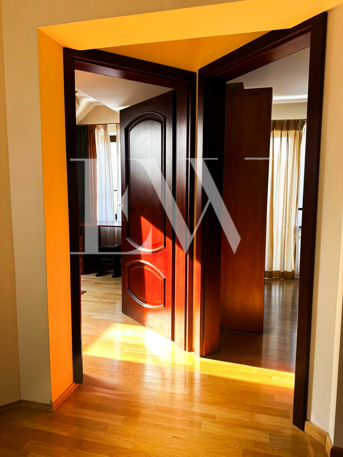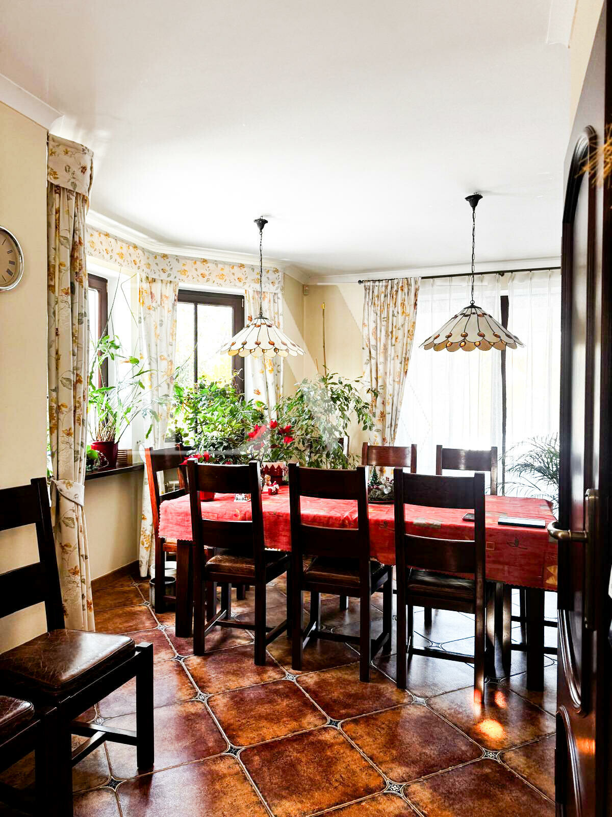 Budynek posiada drewniane, dwuszybowe okna, drewniane parapety oraz drzwi z litego drewna. W salonie znajduje się efektowne, przesuwne okno tarasowe, które doskonale doświetla wnętrze. Ekspozycja okien na wschód, południe i zachód zapewnia naturalne światło przez cały dzień.